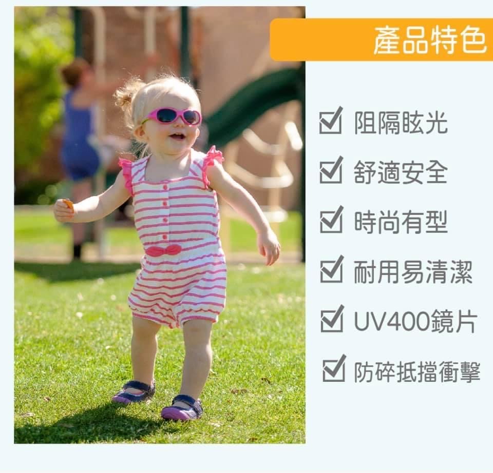Real Kids Shades 美國嬰童太陽眼鏡領導品牌 保護孩童免於紫外線對眼睛的傷害 ❤️舒適的獨特超彈性鏡框。 ❤️可至專業驗光處替換成處方鏡片。 ❤️包覆式設計,有效減少紫外線照射眼睛。 ❤️鏡片採用可防碎及抵擋衝擊的polycarbonate 材質。 ❤️UV400鏡片,可完全過濾UVA和UVB兩種紫外線,保護寶寶雙眼不受到紫外線傷害。 頭圍Size 0-2歲:47cm以下 2-4歲:48-50cm 4-7歲:51-53cm 7歲以上:53cm+ 【產 地】台灣 【材 質】polycarbonate聚碳酸酯TPEE熱塑性聚酯彈性體塑膠 【濾鏡分類】3 【光學等級】1 *預訂約一星期