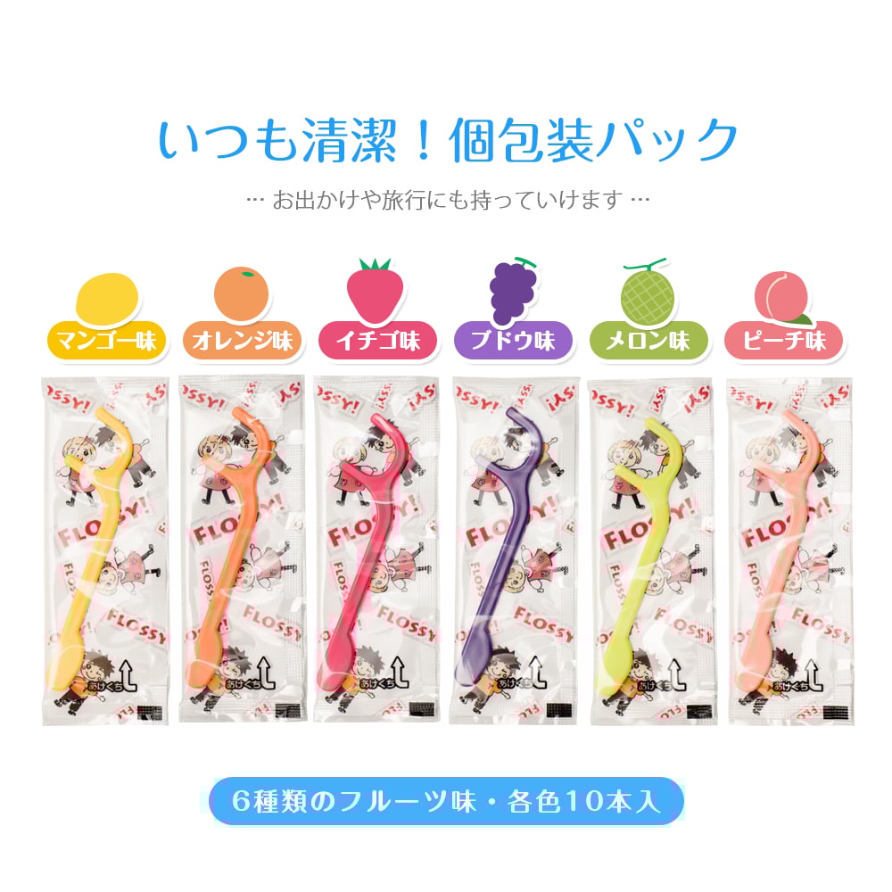 日本牙醫建議小朋友從小就養成每晚睡前用牙線棒來清潔牙齒既習慣,可以加強牙齒清潔,使口腔及牙肉更加健康。 牙線棒顏色鮮艷吸引,而且Easy Grip棒狀讓小孩容易緊握及使用,仲有 「6種味道」 ,令小朋友更易接受(香蕉,提子,橙,蘋果,檸檬,士多啤梨) ❤️ 有助減少兒童患牙周病、蛀牙或牙菌膜形成的機會 ❤️讓兒童自少養成良好清潔牙齒的習慣 ❤️特設6款不同水果味牙線,吸引兒童使用,減少抗拒 ❤️特幼牙線和特制手柄,專為兒童而設 ❤️全部獨立包裝設計,方便衛生,出外旅行一樣適用