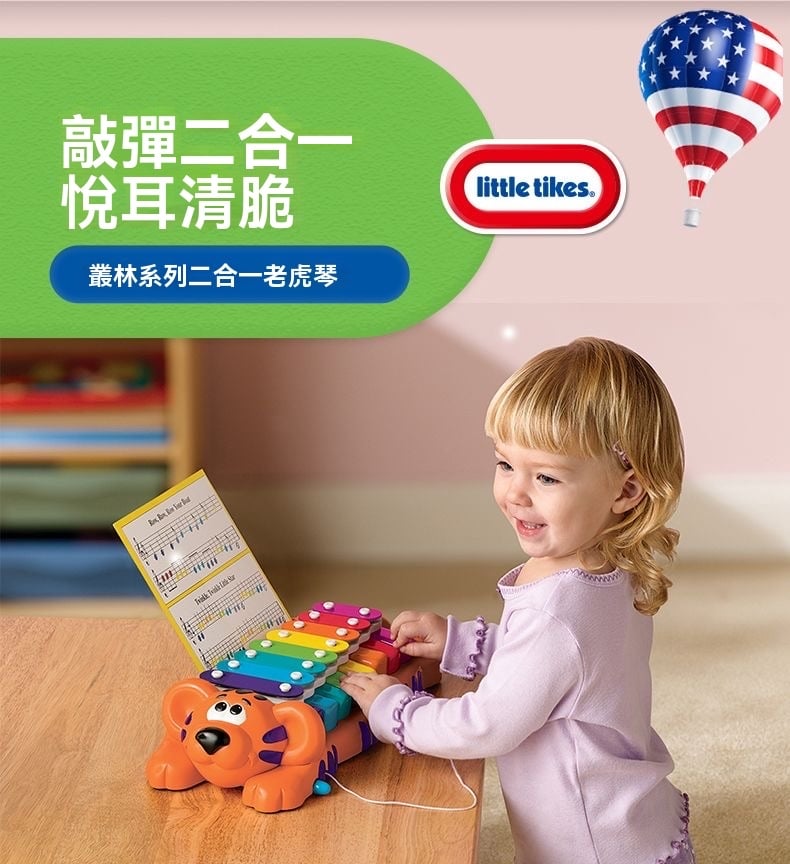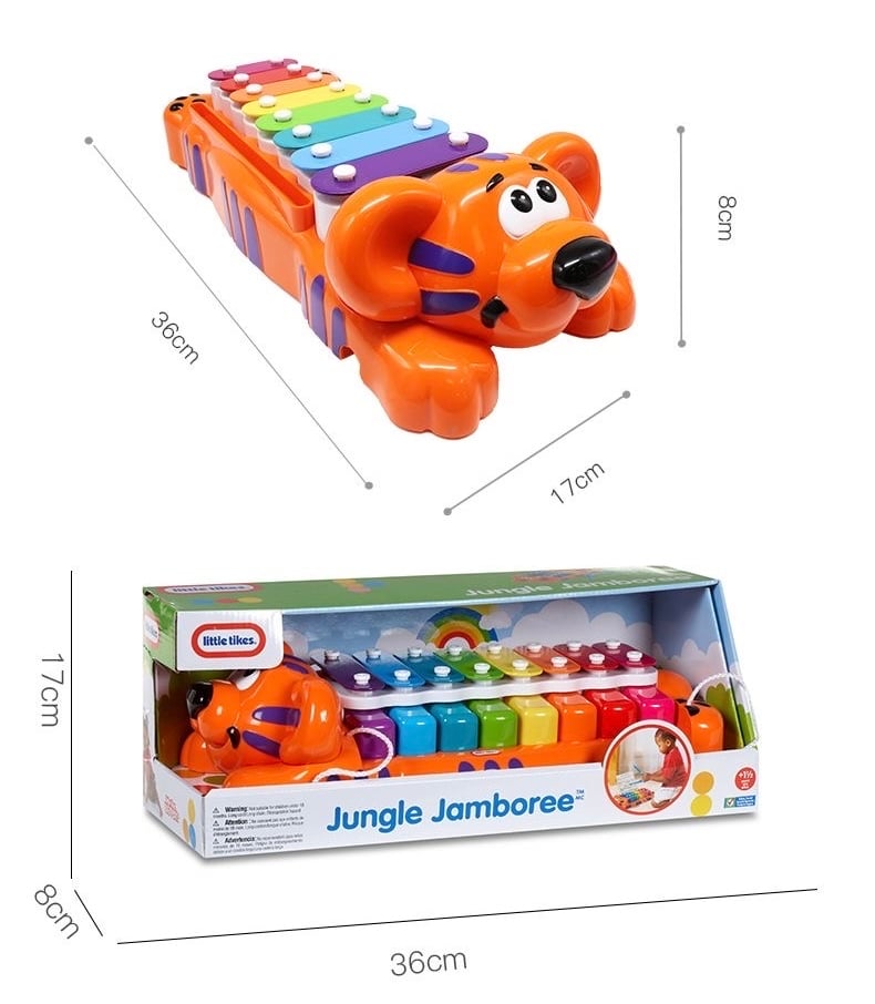 這是一款Little Tikes (小泰克) Jungle Jamboree 老虎2 合1 鋼琴/木琴玩具,它結合了鋼琴和木琴兩種樂器功能,玩具配有繫繩的琴槌,以防止遺失,邊緣光滑圓潤,設計安全。 *預訂約一星期